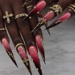 Red Stilleto Nails | Gold Charms | OmbrΓ©