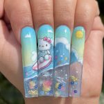 Neon Gradient Coffin Nails with 3D Art & Rhinestones🌈🦄